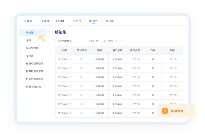 具備高效的賬簿管理功能,讓您迅速掌握各種財(cái)務(wù)數(shù)據(jù)。只需錄入憑證,便能從多個(gè)角度檢索和查詢各類賬簿,包括總賬、明細(xì)賬、多欄式賬、數(shù)量金額賬以及核算項(xiàng)目類賬簿。