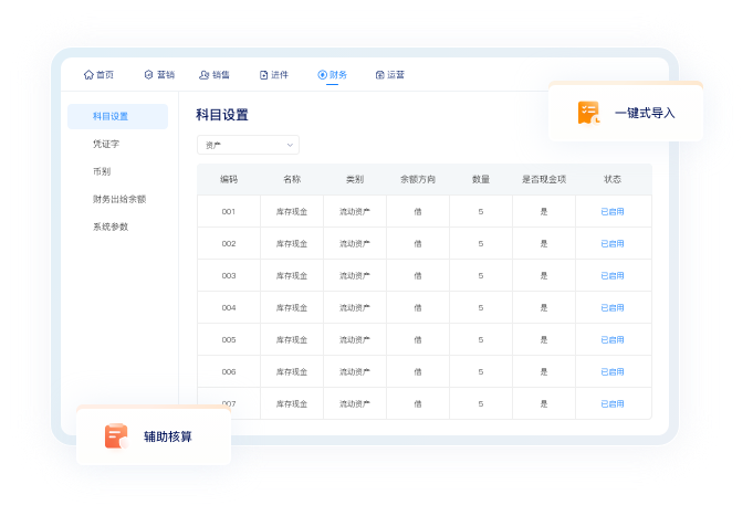 根據(jù)企業(yè)各自的業(yè)務(wù)性質(zhì)、經(jīng)營(yíng)目標(biāo)、規(guī)模、業(yè)務(wù)復(fù)雜度及組織結(jié)構(gòu)的差異,支持多級(jí)會(huì)計(jì)科目設(shè)置,實(shí)現(xiàn)一鍵式導(dǎo)入和后期的輔助核算功能。清晰地揭示財(cái)務(wù)實(shí)際情況,從而提高財(cái)務(wù)工作的整體質(zhì)量。